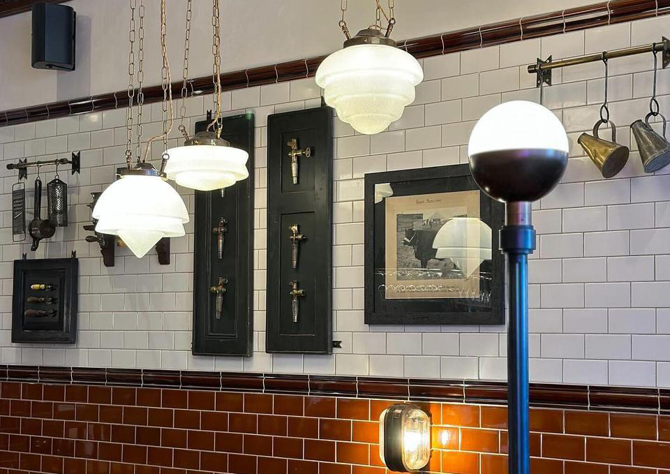 By integrating period-specific colours—like Burgundy, Midnight Blue, and Inca Gold—along with contemporary lighting, the tiled feature wall in the entryway becomes both a conversation starter and a visual guide, drawing customers into the space with a sense of history and sophistication.