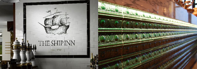 Golden Cup Inn owner Steve asked us to reproduce the original interior tiles in both the bar and back room, some of which had been hidden behind plasterboard for many years. We made the reproduction ceramic wall tiles using steel dies in order to match the originals like-for-like, and the glazes were also matched to the original tiles in both rooms.