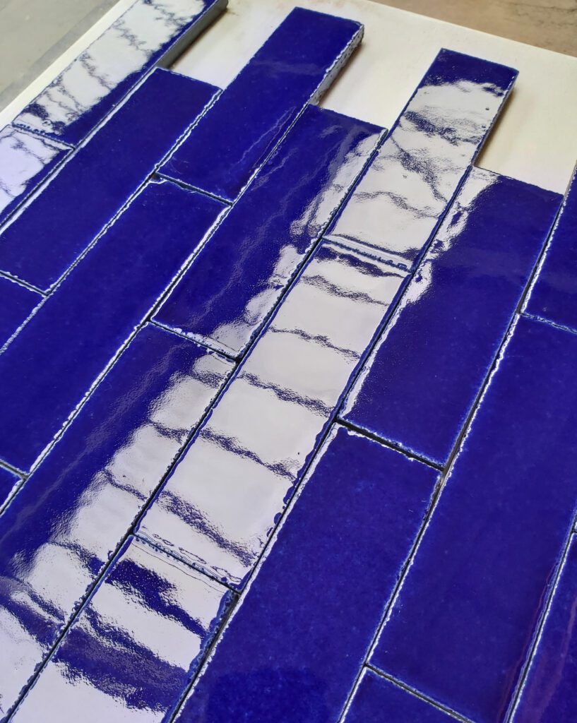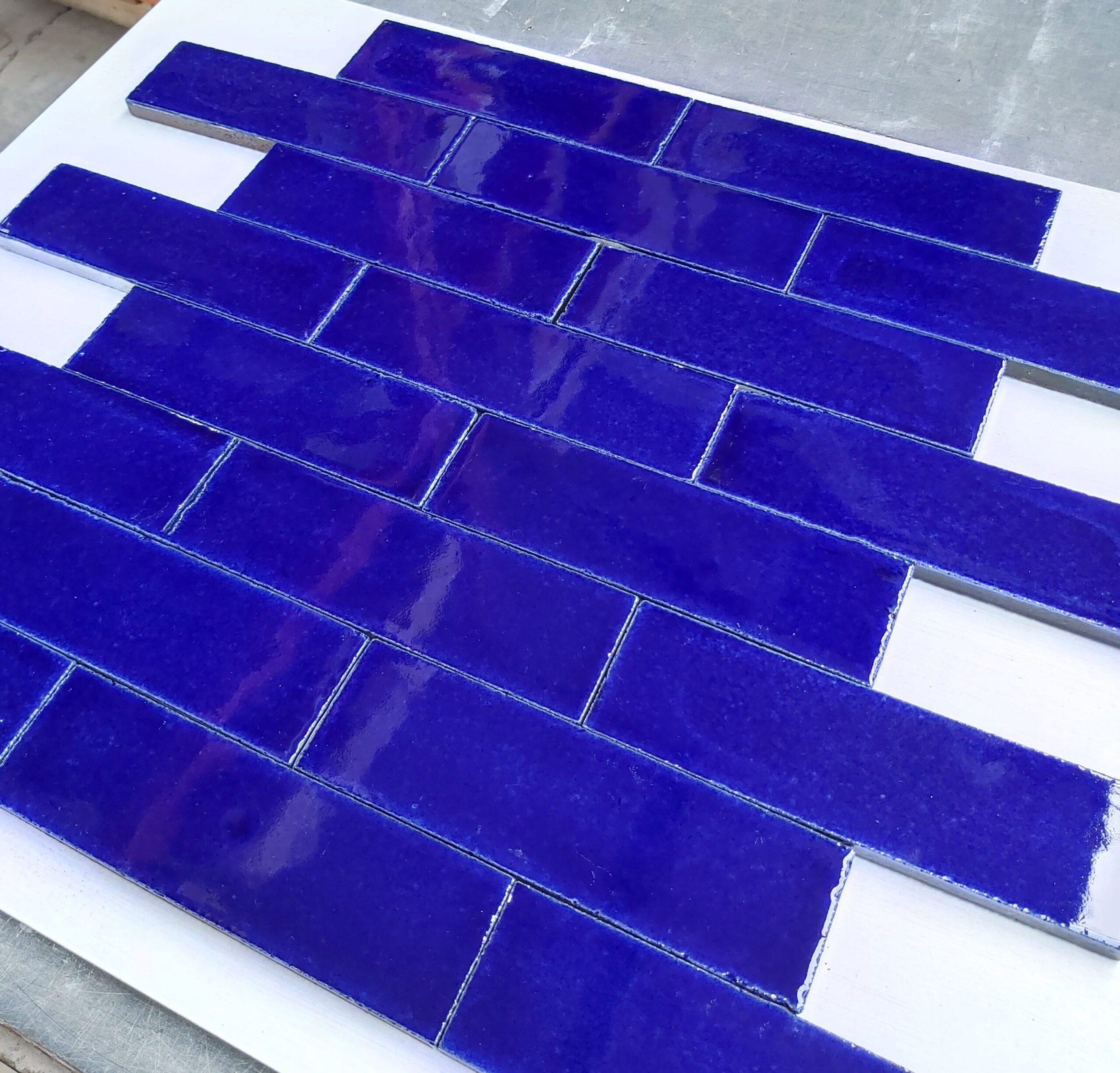 Royal Blue Eco Glazed Brick Slip – Full size standard brick slips seen below: Brick Slip: Length 215mm x Width 65mm x Depth 15mm